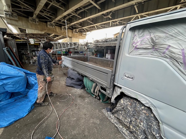 会社のトラックの汚れが目立ってきたので塗装してみました。
